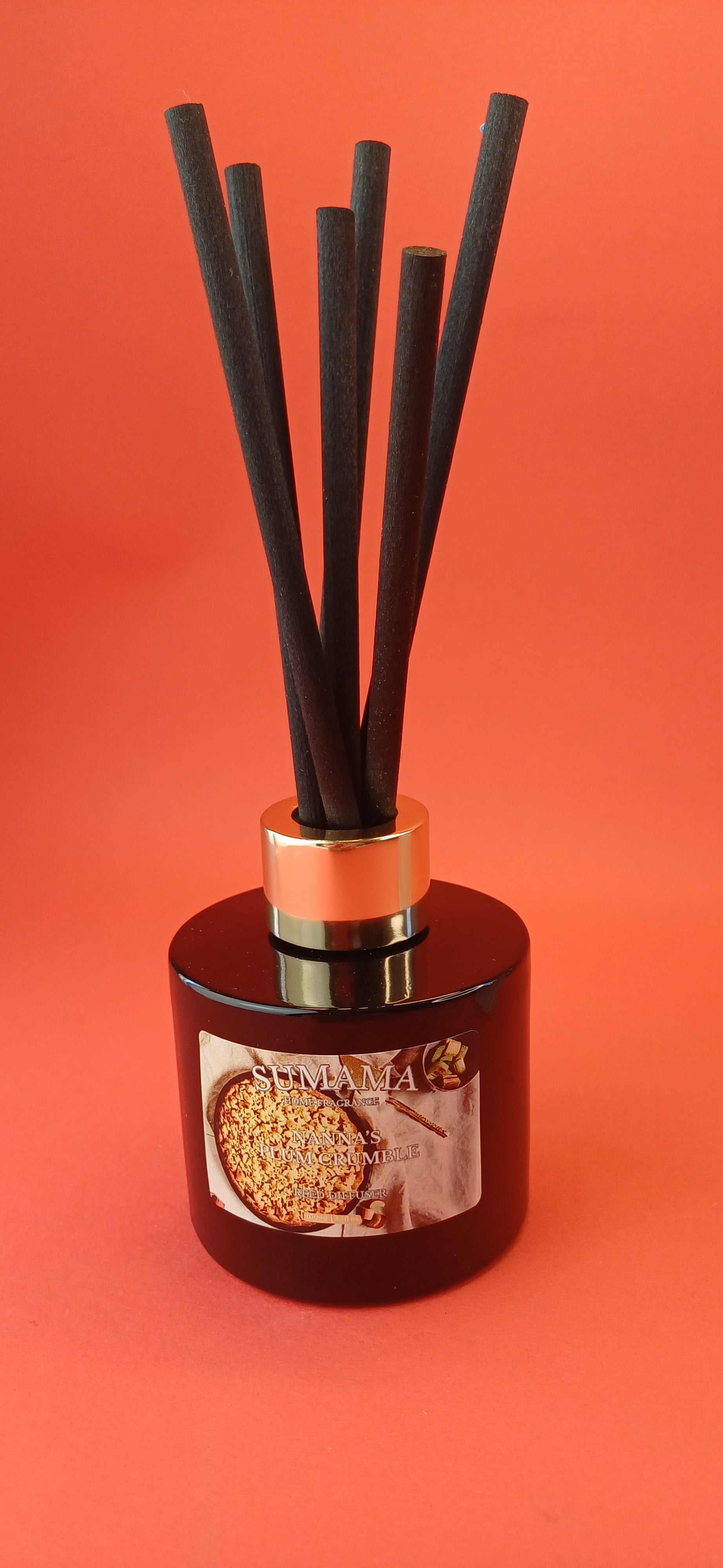 Take a step back in time to Nanna's kitchen where the homely goodness of fresh crumble straight from the oven wafts enticingly through the air. This scent is initially characterised by the sharp aroma of rhubarb, softened by a juicy heart of peach and pear. Beautifully balanced sweet and tangy base notes of plum and blackberry complete the lush, full-bodied fruitiness of the ensemble. Oh, the memory of Nanna's kitchen. Yummy!